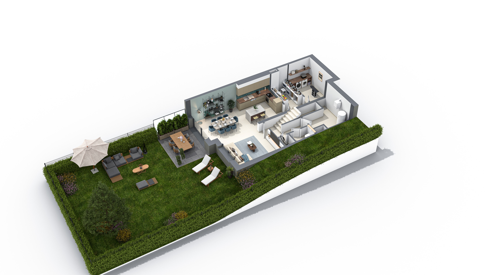 4 chambres spacieuses 2 salles de douche modernes Grand séjour lumineux avec cuisine ouverte, parfaite pour partager des moments conviviaux Balcon, terrasse et jardin privatifs, un véritable havre de paix Garage pour deux voitures, offrant un grand confort au quotidien